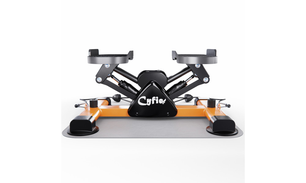 Балансировочный степпер с ковриком и эспандерами DFC CYFIE — идеальный тренажер для ног, который сочетает в себе функциональность, эффективность и стильный дизайн. Этот компактный степпер тренажер для дома позволит вам тренироваться в комфортных условиях, укрепив сердечно-сосудистую систему и проработав основные группы мышц: бедра, икры и верхнюю часть тела. Модный и яркий оранжевый цвет создает позитивную атмосферу, поднимая настроение во время занятий. Максимальный вес пользователя для занятий на степпере равен 100 кг. Использование высококачественного гидравлического цилиндра обеспечивает долговечность и минимальный уровень шума во время тренировки. Степер имеет небольшой размер 54 x 34 x 26 см и легко помещается в углу комнаты, что делает его отличным выбором для небольших пространств. Рифленые педали размером 27 x 12 см обеспечивают надежное сцепление с обувью и предотвращают скольжение во время упражнений, обеспечивая безопасность. Регулируемая высота педалей от 18 до 31 см позволяет индивидуально настраивать степпер под необходимую нагрузку и уровень комфорта пользователя. Оптимальное расстояние между педалями 16,5 см обеспечивает естественное положение ног во время тренировок, что способствует правильной биомеханике движений. Это минимизирует нагрузку на суставы, позволяя избежать чрезмерного напряжения в стопах и голенях. Степпер тренажер оснащен монохромным LCD дисплеем, который отображает ключевые параметры во время тренировки: время, калории, количество шагов , количество шагов в минуту и режим сканирования. Для работы дисплея потребуется 1 батарейка типа AAA (в комплект не входит). В комплекте антивибрационный коврик размером 72 x 36,5 см для защиты пола и комфортной тренировки, а также эспандеры 76 см для одновременной проработки нижней и верхней части тела, что делает тренировки более разнообразными и эффективными. Резиновые накладки на нижней части министеппера предотвращают скольжение и повышают устойчивость, добавляя уверенности при выполнении упражнений. Балансировочный мини степпер тренажер DFC CYFIE — это универсальный тренажер для похудения, который станет отличным помощником в поддержании физической формы!