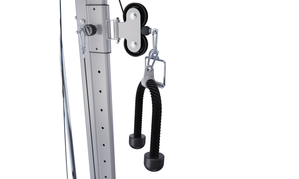 Силовые стеки весом по 90 кг входят в комплектацию, а вес каждой пластины равен 6 кг. Плавность хода стеков обеспечивают ролики на подшипниках. Конструкция тренажёра выполнена из высококачественной стали и обеспечивает его устойчивость и надёжность.